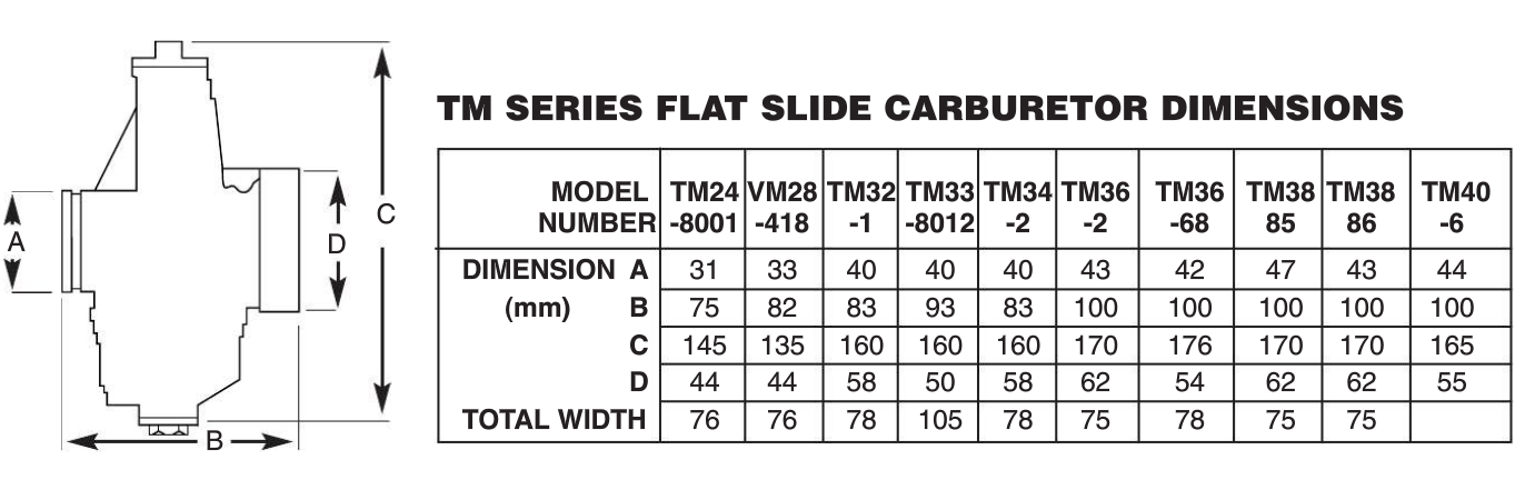 | TM Series Flat Slide Carburetors w/Accelerator Pump | |||||||